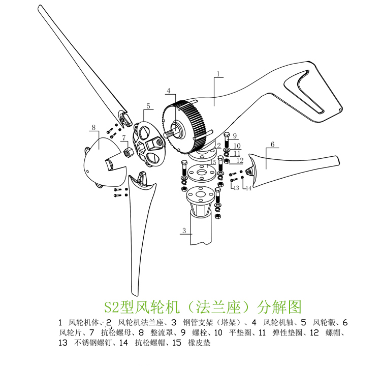 3、風輪葉片采用尼龍纖維材質(zhì),配以優(yōu)化的氣動外形設計和機構設計,啟動風速低,風能利用系數(shù)高,增加了年發(fā)電量;