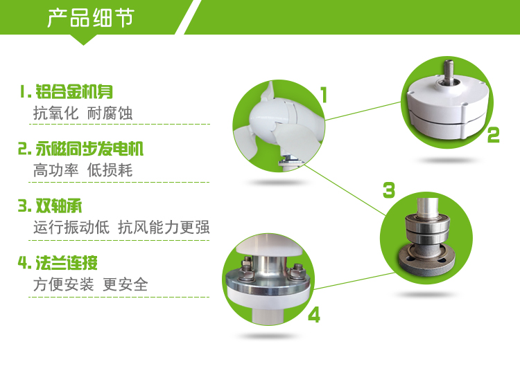 3、風(fēng)輪葉片采用尼龍纖維材質(zhì),配以優(yōu)化的氣動外形設(shè)計和機(jī)構(gòu)設(shè)計,啟動風(fēng)速低,風(fēng)能利用系數(shù)高,增加了年發(fā)電量;