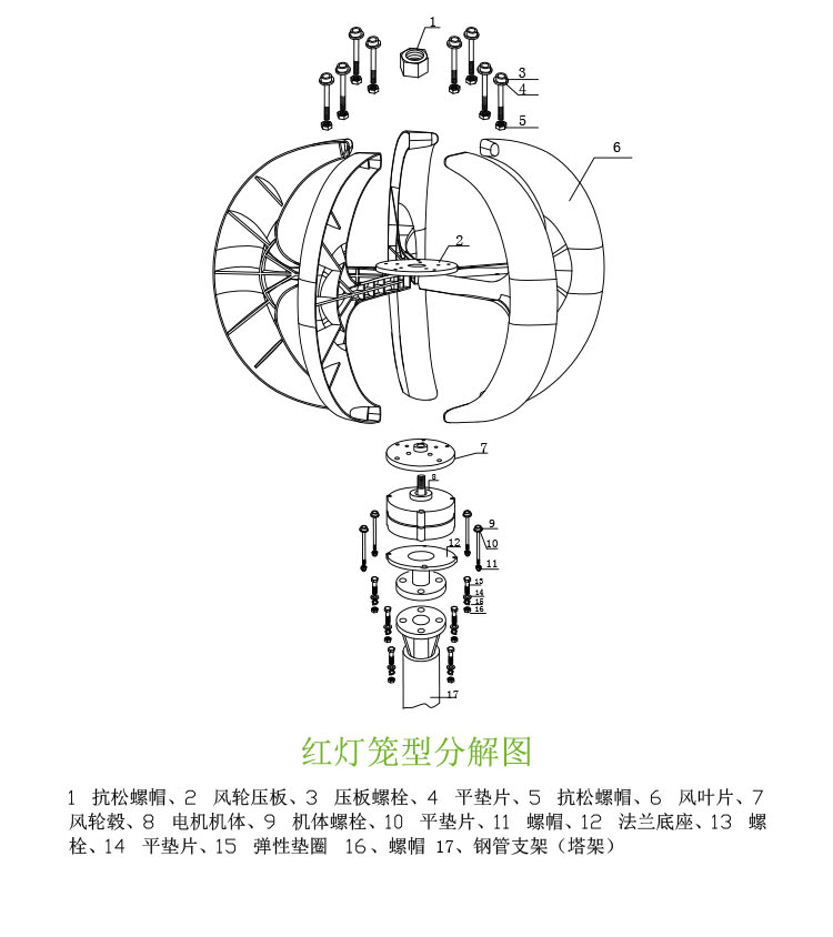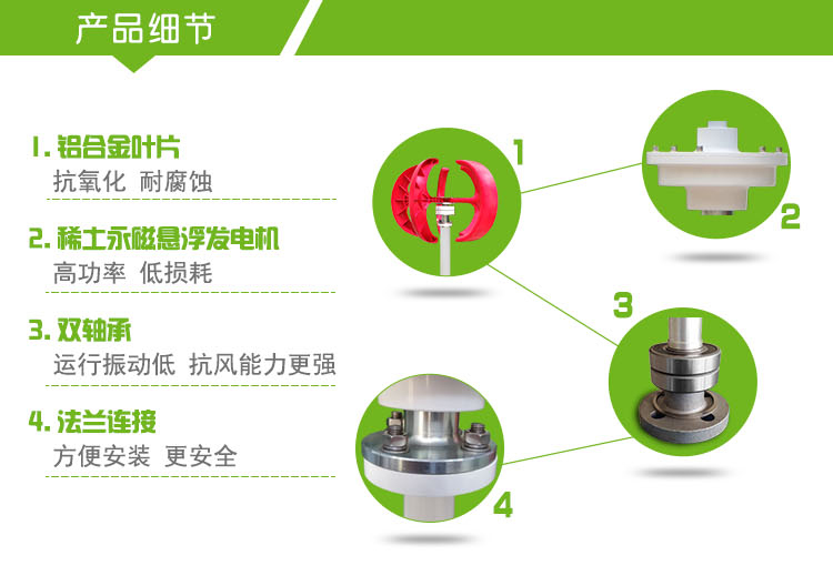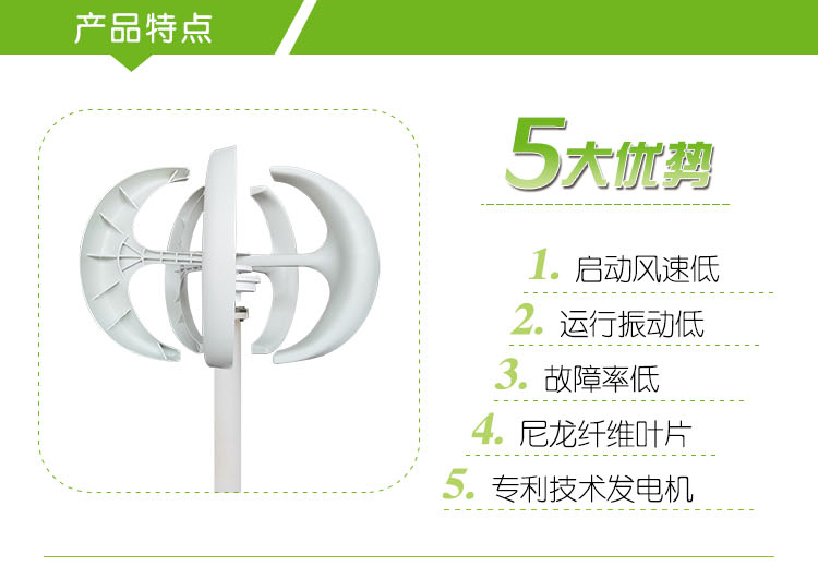 3、風輪葉片采用尼龍纖維,優(yōu)化的氣動外形設計,啟動風速低,量產顏色可根據客戶要求制作;