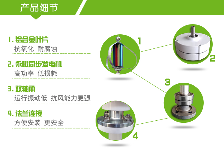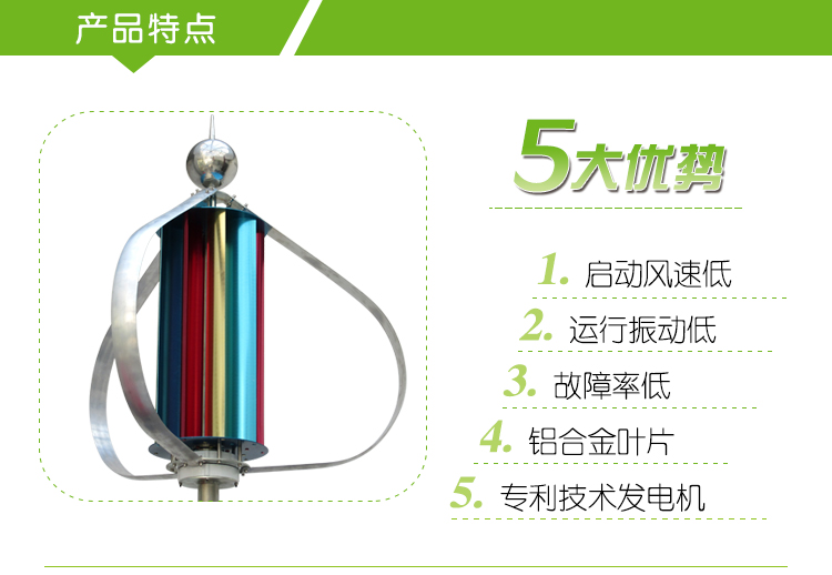 4、發(fā)電機(jī)采用專利技術(shù)的永磁轉(zhuǎn)子交流發(fā)電機(jī),配以特殊的轉(zhuǎn)子設(shè)計,有效地降低發(fā)電機(jī)的阻轉(zhuǎn)矩,僅為普通電機(jī)的1/3,同時使風(fēng)輪與發(fā)電機(jī)具有更為良好的匹配特性,機(jī)組運行的可靠性。