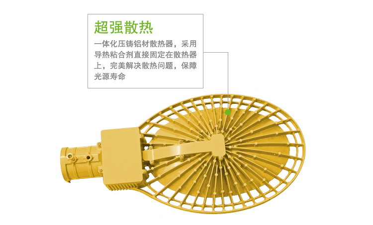 >230lm/W, 豎向散熱片設計,便于雨水自潔 |