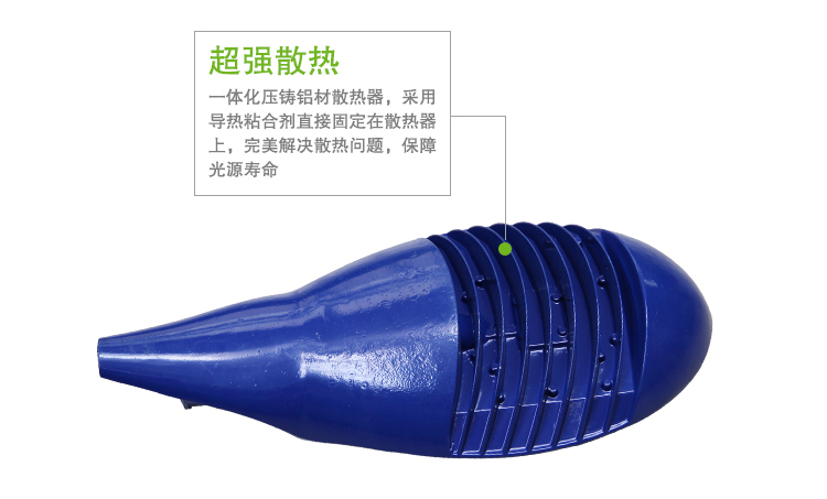 >230lm/W, 豎向散熱片設計,便于雨水自潔 |