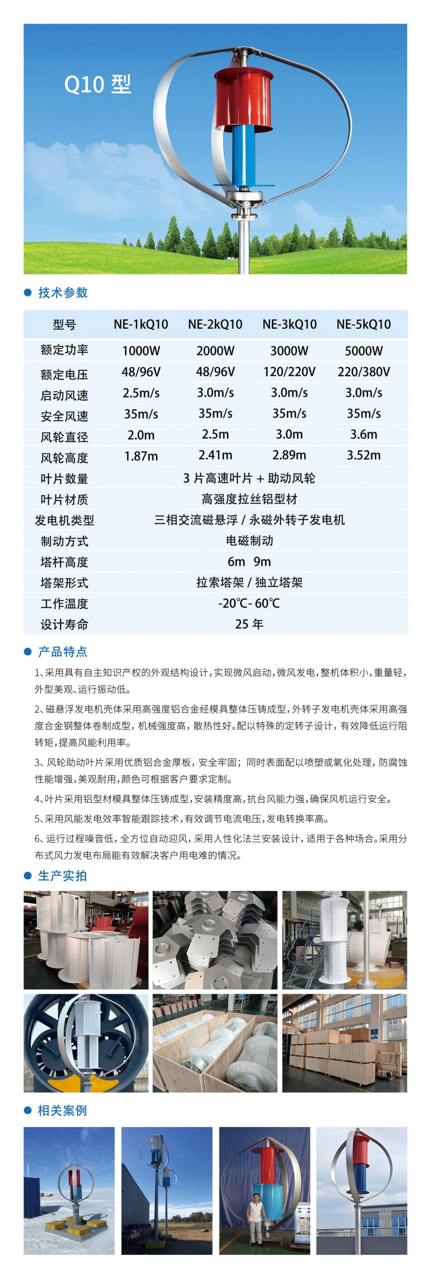 ? 運行過程噪音低,全方位自動迎風,采用人性化法蘭安裝設計,適用于各種場合。采用分布式風力發(fā)電布局能有效解決客戶用電難的情況。